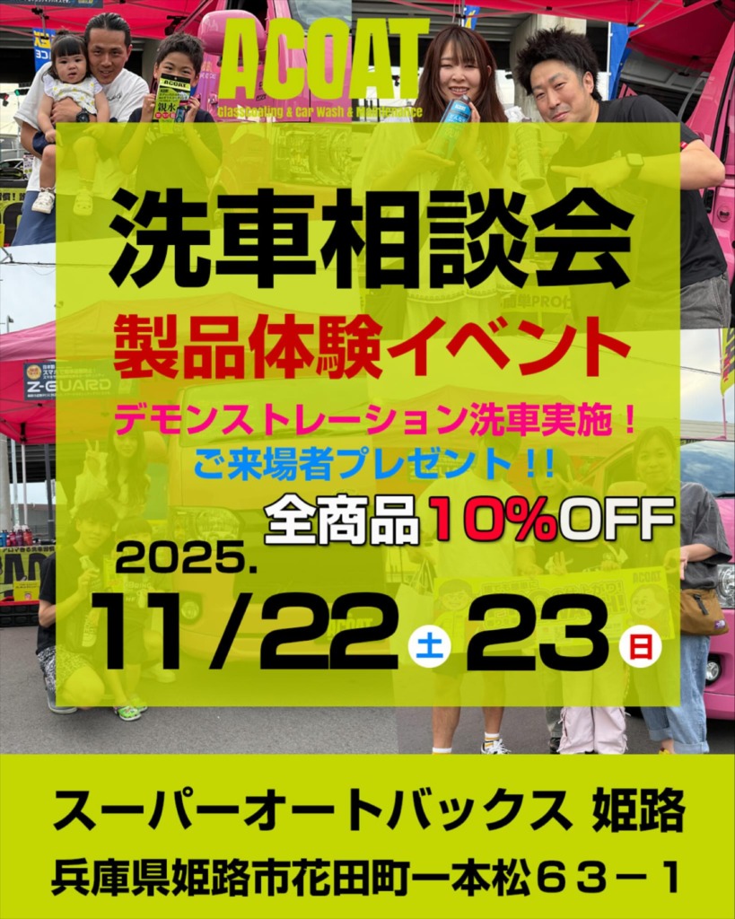 11/22(土)~23(日)スーパーオートバックス姫路でACOATイベント開催‼️