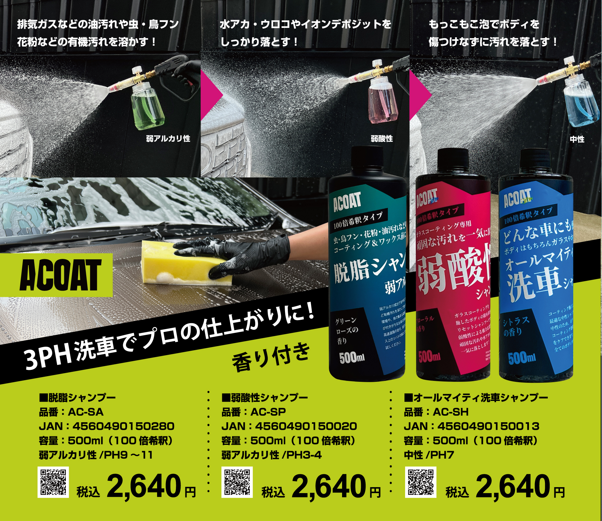 3PH洗車では最後のコンタクトウォッシュとしてご使用ください。